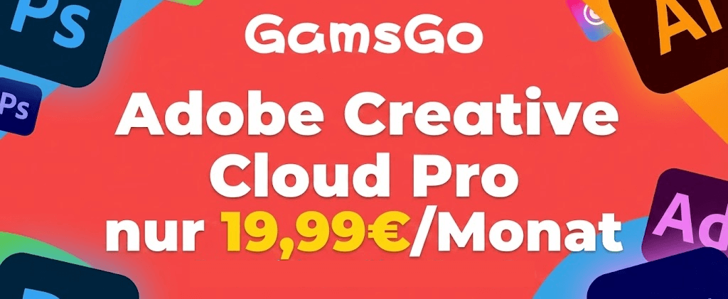 Über GamsGo erhält man Adobe Creative Cloud Pro bereits für 19,99 € pro Monat. GamsGo ist eine seit 2020 bestehende Plattform aus London mit inzwischen über einer Million Nutzern. Das Grundprinzip: Bei Streaming-Abos nutzt GamsGo offiziell vorgesehene Familien- oder Gruppenmodelle, sodass sich mehrere Personen ein Premium-Abo teilen können.