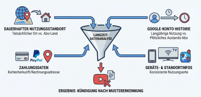 Warum VPN-Tricks bei YouTube nach Monaten auffallen. Nicht ein einzelner Fehler, sondern ein klares Muster führt zur Kündigung.